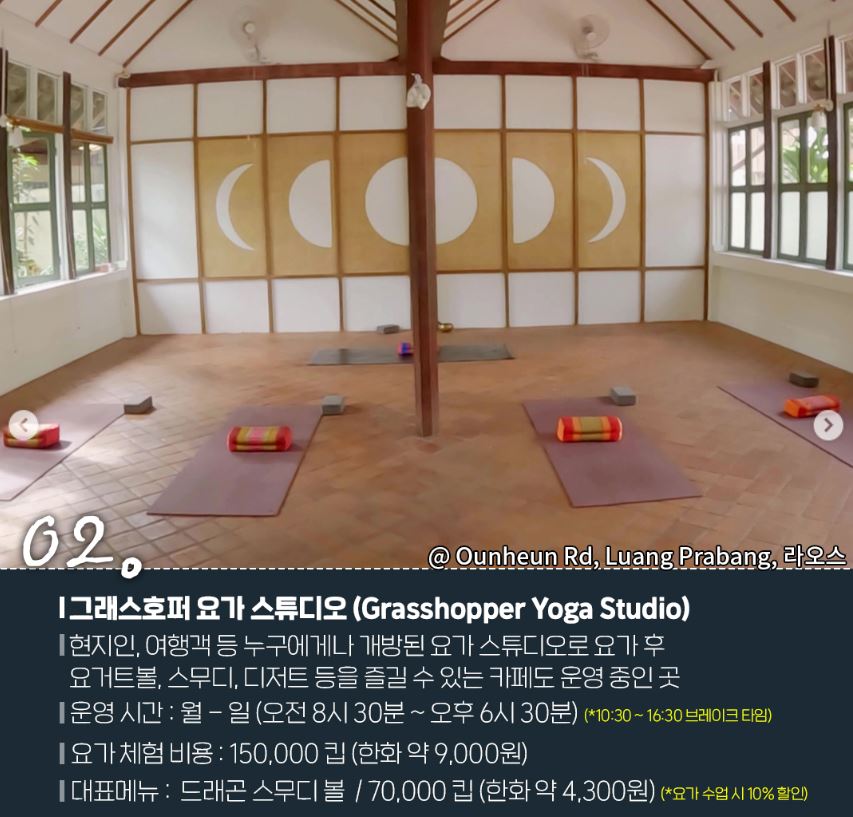 - 요가체험비용: 150,000킵(한화9,000원)